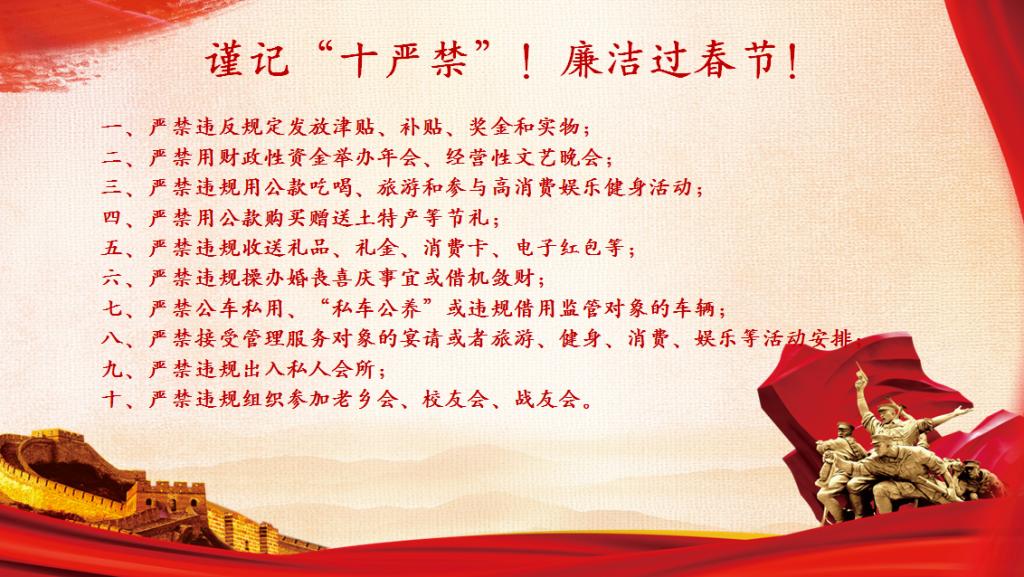 为深入贯彻党的二十大精神作出的新部署,坚守初心使命,弘扬清风正气,旗帜鲜明抵制和反对“四风”,自觉做到“十严禁”,全力营造风清气正的节日氛围,pp电子官方网站党总支向全体教职工温馨提醒: