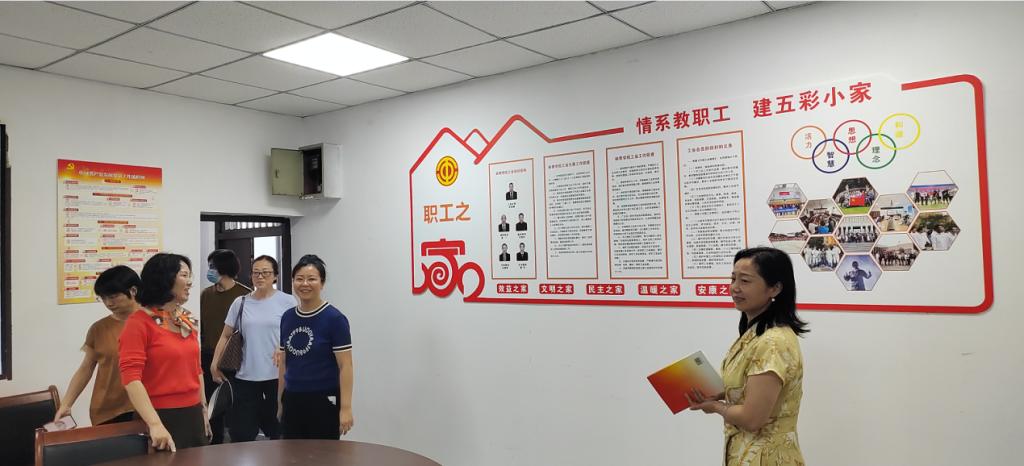 2023年5月24下午,重庆市教科文卫体工会副主席袁菁霞、二级调研员刘春艳以及pp电子官方网站工会副主席邱枫一行到pp电子官方网站就“五彩职工小家建设”进行调研并指导工作。pp电子官方网站党总支书记王静、组织员余晓、工会主席张亚峰、办公室主任周晋、学工办主任傅杨以及全体工会委员参加了学习调研。