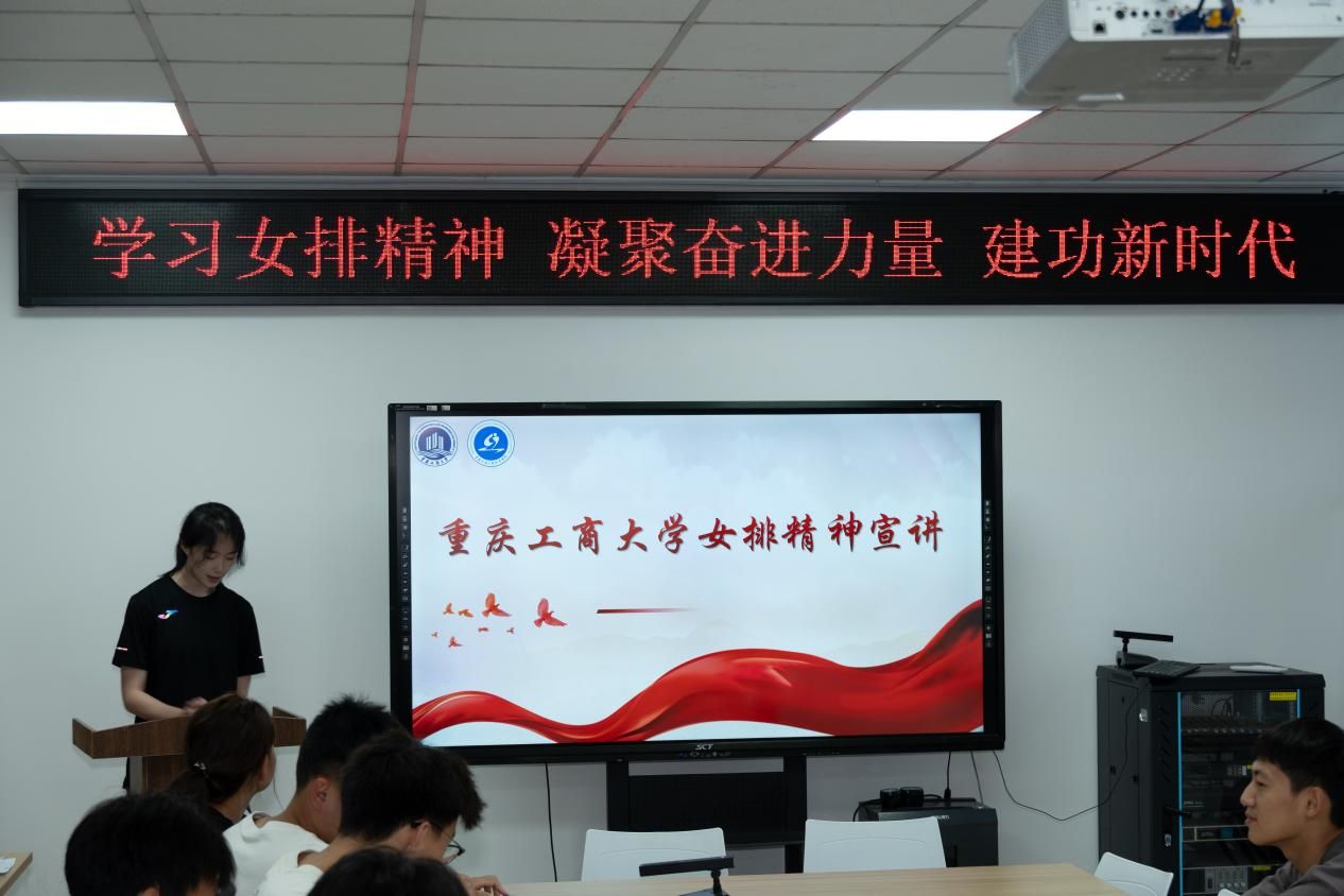 随后,校女排两位功勋队员代表走上讲台,结合自身经历分享了感人至深的感悟。她们讲述了日复一日高强度训练中的汗水与泪水,回顾了赛场逆境中全队上下咬紧牙关、相互支撑最终实现惊天逆转的经典战役,更深情表达了对学校、对教练、对一届届队友的付出的感恩。她们坦言,正是“祖国荣誉高于一切、团队利益重于个人”的坚定信念,铸就了不朽的连冠传奇。这些来自赛场最前沿的真实故事和肺腑之言,深深打动了在场的每一位同学。